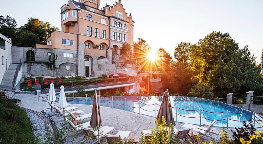 Hotel Schloss Mönchstein: Dieses 5-Sterne-Superior-Hotel genießt eine einzigartige Lage auf dem Mönchsberg im Zentrum von Salzburg. Es begrüßt Sie inmitten eines großen Parks und bietet Panoramablick auf die Stadt, einen Infinity-Außenpool und einen Whirlpool im Freien... [mehr lesen]
